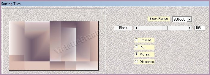 **Effets/Medhi/Sorting Tiles réglages suivants :