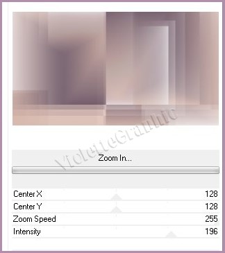 **Effets/Unlimited 2 / Filter Factory Gallery A / Zoom In réglages suivants :