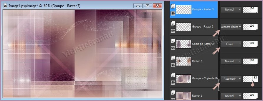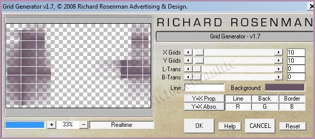 **Effets/Effets de bords/Accentuer Davantage ** Image/Miroir/Miroir vertical **Image/Miroir/Miroir horizontal **Effets/Richard Rosenman / Grid Generator v1.5 / Line : #ffffff / Background : #6a5566