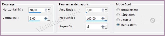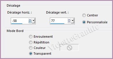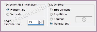 **Effets/Effets géométriques/inclinaison réglages suivants :