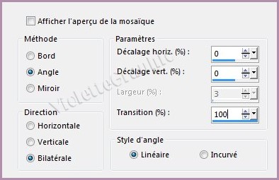 **Effets/Effets d'image/Mosaïque sans jointure réglages suivants: