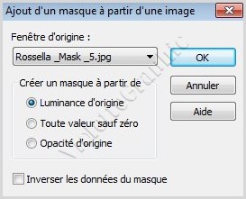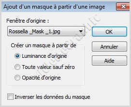 3 - Activer le masque Ildiko_Design@Rosella_Mask_1.jpg Calques/Nouveau calque de masque/à partir d'une image/Ajout d'un masque à partir d'une image sélectionner le masque Ildiko_Design@Rossella_Mask_1.jpg