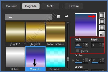 3 - Calques/Nouveau calque **Remplir de dégradé linéaire/angle: 270°/Répétition: 0/Inverser non coché