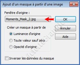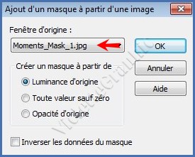 **Activer le masque Ildiko_Design@Moments _Mask _1.jpg Calques/Nouveau calque de masque/à partir d'une image/Ajout d'un masque à partir d'une image sélectionner le masque Ildiko_Design@Moments_Mask _1.jpg