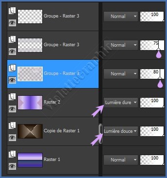 **cocher luminance d'origine clic droit sur le calque groupe /Fusionner le groupe **Effets/Effets 3D/Ombre Portée : 0/ 0/50/20/couleur #000000Opacité à 75%