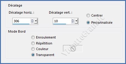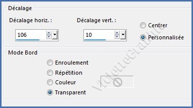 9 - Activer de nouveau votre petite image Edition/Copier/Edition/Coller comme nouveau calque **Effets/Effets d'image/Décalage réglages suivants :