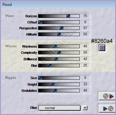 2 - Effets/ Flaming Pear / Flood / #8260a4 réglages suivants :