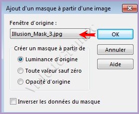 **Activer le masque Ildiko_Design@Illusion_Mask _3.jpg Calques/Nouveau calque de masque/à partir d'une image/Ajout d'un masque à partir d'une image sélectionner le masque Ildiko_Design@Illusion_Mask _3.jpg