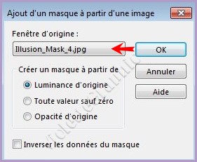 **Activer le masque Ildiko_Design@Illusion_Mask _4.jpg Calques/Nouveau calque de masque/à partir d'une image/Ajout d'un masque à partir d'une image sélectionner le masque Ildiko_Design@Illusion_Mask _4.jpg