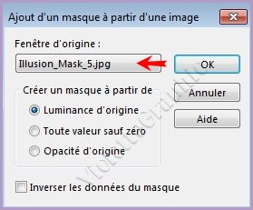 **Activer le masque Ildiko_Design@Illusion_Mask _5.jpg Calques/Nouveau calque de masque/à partir d'une image/Ajout d'un masque à partir d'une image sélectionner le masque Ildiko_Design@Illusion_Mask _5.jpg