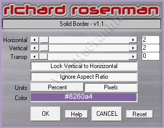 11 - Fenêtre/Dupliquer ** Calques/Fusionner tout Effets/ Richard Rosenman / Solid Border réglages suivants : couleur #8260a4