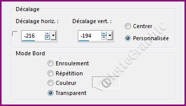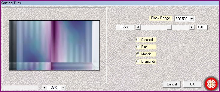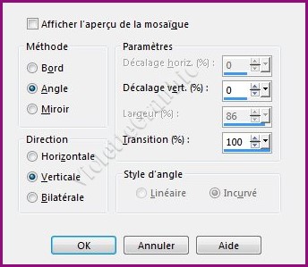 **Effets/Effets d'image/Mosaïque sans jointure réglages suivants: