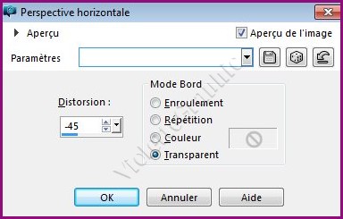 3 - Effets/Effets géométriques/perspective Horizontale réglages suivants :