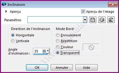 **Effets/Effets géométriques/ inclinaison réglages suivants :