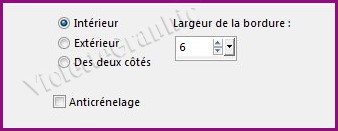 15 - Image/Ajouter des bordures : 6 pixels couleur #513f89 Sélection/Sélectionner Tout Sélection/Modifier/Sélectionner les bords de la sélection