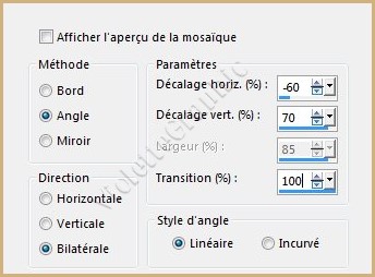 **Effets/Effets d'image/Mosaïque sans jointure réglages suivants: