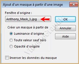 **Activer le masque Ildiko_Design@Anthony_Mask _1.jpg Calques/Nouveau calque de masque/à partir d'une image/Ajout d'un masque à partir d'une image sélectionner le masque Ildiko_Design@Anthony_Mask _1.jpg