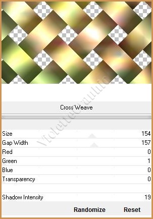 **Effets/Unlimited 2 / VM Texture : Cross Weave réglages suivants :