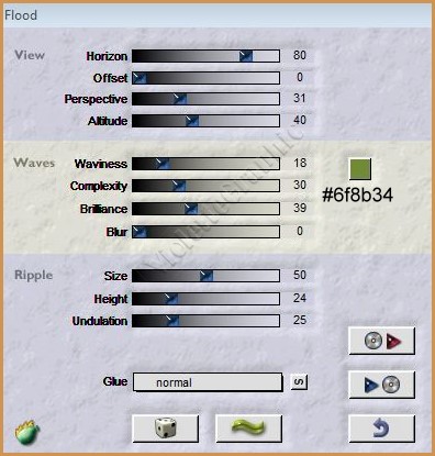 **Effets/ Flaming Pear / Flood réglages suivants : Couleur : #6f8b34