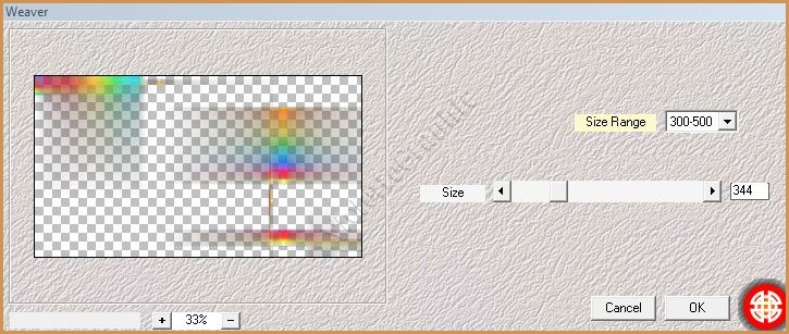 4 - Ouvir le tube Ildiko_Design@Mabella_Wave_1.pngEdition/Copier/Edition/Coller comme nouveau calque **Effets / Mehdi / Weaver / Size Range : 350 - 500 / Size : 344