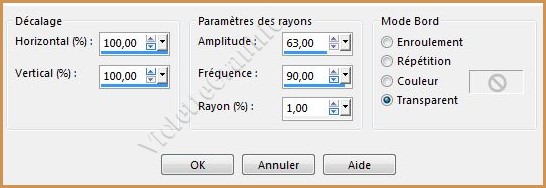7 - Ouvir le tube Ildiko_Design@Mabella_Wave_2.pngEdition/Copier/Edition/Coller comme nouveau calque **Effets/Effets de Distorsion/ Rayonnement réglages suivants :