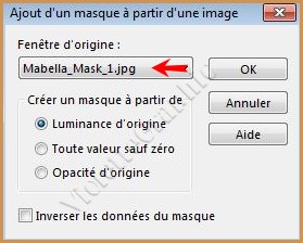 **Activer le masque Ildiko_Design@Mabella_Mask_1.jpg Calques/Nouveau calque de masque/à partir d'une image/Ajout d'un masque à partir d'une image sélectionner le masque Ildiko_Design@Mabella_Mask_1.jpg
