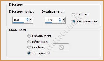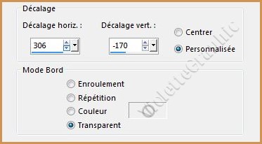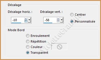 10 - Edition/Copier/Edition/Coller comme nouveau calque**Effets/Effets d'image/Décalage réglages suivants :