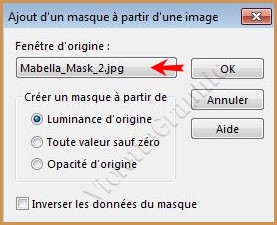 **Activer le masque Ildiko_Design@Mabella_Mask_2.png Calques/Nouveau calque de masque/à partir d'une image/Ajout d'un masque à partir d'une image sélectionner le masque Ildiko_Design@Mabella_Mask_2.jpg