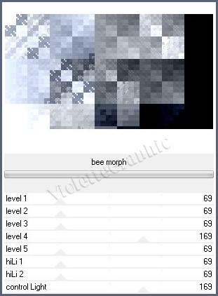 **Effets/ Unlimited 2 / &<Bkg Designer sf10 I> / bee morph réglages suivants :