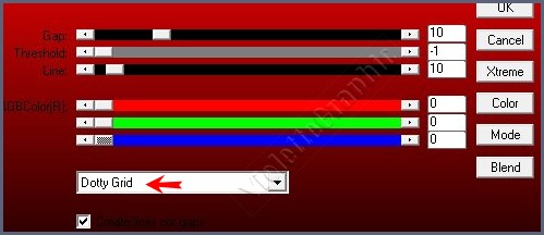 **Image/Retourner/Renverser horizontalement **Effets/ AP 01 (Inivation) / Lines-SilverLining / Dotty Grid réglages suivants: