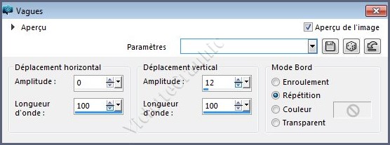 **Effets/Effets de Bord/Accentuer **Effets/Effets 3D/Ombre Portée : 0/0/50/20/couleur #000000**Effets/Effets de Distorsion/ Vagues réglages suivants :