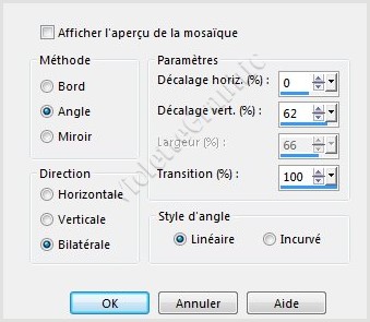 **Effets/Effets de Bord/Accentuer **Effets/Effets d'image/Mosaïque sans jointure réglages suivants: