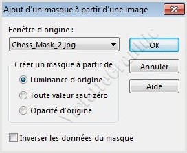**Activer le masque Ildiko_Design@_Chess_Mask_2.jpg Calques/Nouveau calque de masque/à partir d'une image/Ajout d'un masque à partir d'une image sélectionner le masque Ildiko_Design@_Chess_Mask_2.jpg