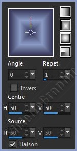*** 1 - Ouvrir une image transparente de 900 x 500 pixels remplir de dégradé radial/angle: 0°/répétition : 1 /inverser non coché