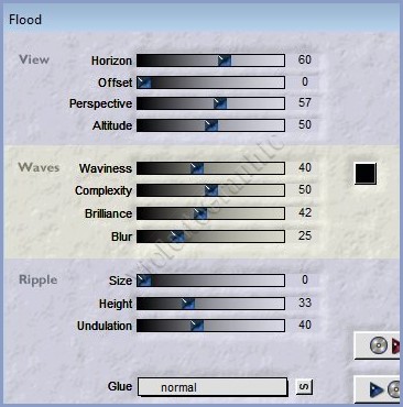 **cocher luminance d'origine **Dans la Palette des calques clic droit sur le calque groupe /Fusionner le groupe **Effets/Effets de Réflexion/ Vagues réglages suivants :