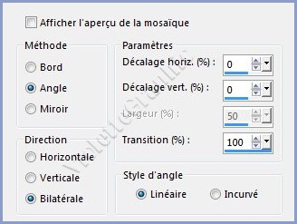**Effets/Effets d'image/Mosaïque sans jointure réglages suivants:
