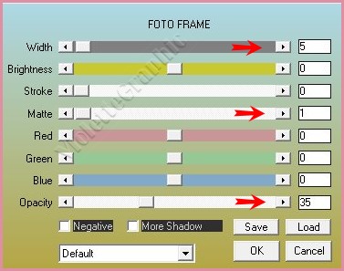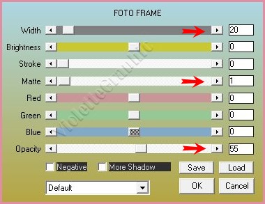 **Effets/AAA Frame/Foto frame réglages suivants :