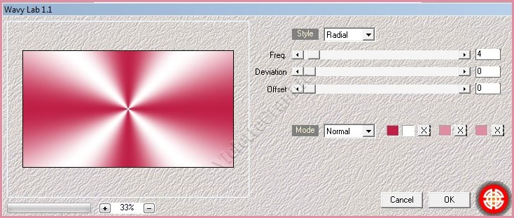 2 - Ouvrir une image transparente de 900 x 500 pixels **Effets/Mehdi/Waby Labs 1.1 réglages suivants :