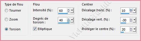 Réglages/Flou/Flou radial réglages suivants :
