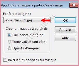 ** Activer le masque ildiko_design_linda_mask_01.jpg Calques/Nouveau calque de masque/à partir d'une image/Ajout d'un masque à partir d'une image sélectionner le masque ildiko_design_linda_mask_01.jpg