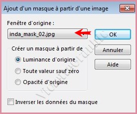 **Activer le masque ildiko_design_finda_mask_02.jpg Calques/Nouveau calque de masque/à partir d'une image/Ajout d'un masque à partir d'une image sélectionner le masque ildiko_design_linda_mask_02.jpg