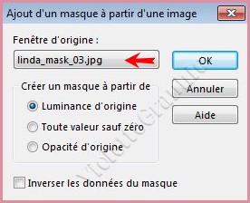 **Activer le masque ildiko_design_linda_mask_03.jpg Calques/Nouveau calque de masque/à partir d'une image/Ajout d'un masque à partir d'une image sélectionner le masque ildiko_design_linda_mask_03.jpg