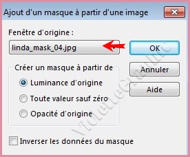 **Activer le masque ildiko_design_linda_mask_04.jpg Calques/Nouveau calque de masque/à partir d'une image/Ajout d'un masque à partir d'une image sélectionner le masque ildiko_design_linda_mask_04.jpg
