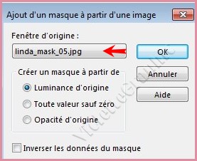 **Activer le masque ildiko_design_linda_mask_05.jpg Calques/Nouveau calque de masque/à partir d'une image/Ajout d'un masque à partir d'une image sélectionner le masque ildiko_design_linda_mask_05.jpg
