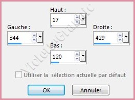 **Calques/Nouveau calque Activer l'outil sélection/clic sur Sélection Personnalisée Placer ces chiffres :