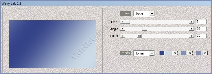 *** 1 - Ouvrir une image transparente de 900 x 500 pixels ** Effets/Mehdi/Waby Labs réglages suivants :