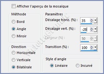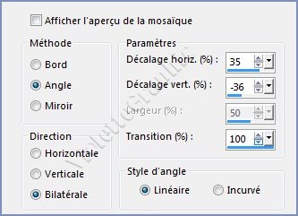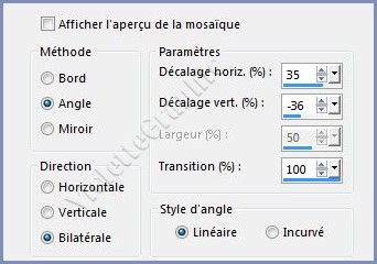 **Effets/Effets d'image/Mosaïque sans jointure réglages suivants: