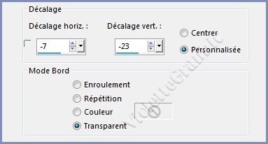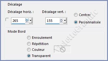 **Effets/Effets d'image/Décalage réglages suivants :