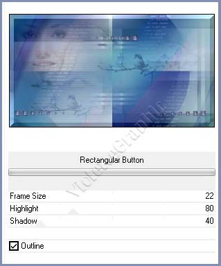 **Calques/Fusionner tout **Image/Ajouter des bordures : 1 pixels couleur #344388Effets/ Unlimited 2 / Buttons & Frames / Rectangular Button réglages suivants :