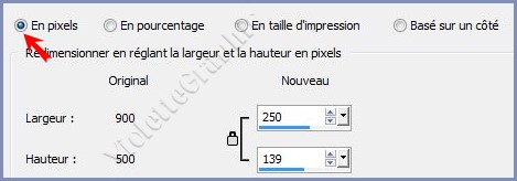 **Image/Redimensionner à 250 x 139 pixels/décocher " Redimensionner tous les calques"